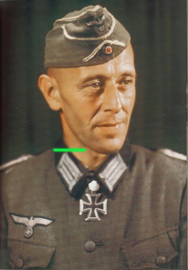 Oberst der Reserve Alfons König (29 Desember 1898 - 8 Juli 1944) tak lama setelah penganugerahan Eichenlaub. Dia mengenakan offizier feldmütze M38 bergaris putih infanteri yang sudah bulukan di kepalanya. insignia chevron (soutache) di bagian depan dihilangkan mulai tahun 1940. Oberstleutnant König gugur tahun 1944 saat mempertahankan wilayah Bobruisk dari serangan Rusia. Pangkatnya dinaikkan secara anumerta menjadi Oberst. Unit tempat dia ditugaskan: Infanterie-Regiment 199/Grenadier-Regiment 199 "List" dan Grenadier-Regiment 217. Medali yang diraihnya: Ehrenkreuz des Weltkriegs 1914/1918 (Ehrenkreuz für Frontkämpfer); Dienstauszeichnung III.Klasse; 1939 spange zum 1914 Eisernes Kreuz II.Klasse (12 Juni 1940) dan I.Klasse (22 Juni 1940); Infanterie-Sturmabzeichen in Silber; 1939 Verwundetenabzeichen in Schwarz; Medaille Winterschlacht im Osten 1941/42 (1943); dan Schwerter #70 (9 Juni 1944) zum Ritterkreuz des Eisernen Kreuzes #254 (21 Desember 1940) mit Eichenlaub #194 (21 Februari 1943)